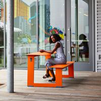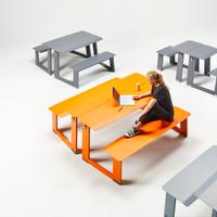 Take-Out élargit le concept de tables munies d’assises fixes avec des lignes simplifiées et une polyvalence accrue. Suffisamment légères pour être soulevées, déplacées et réagencées, les tables Take-Out offrent aux gens de nouvelles façons d’entrer en contact dans les espaces extérieurs - face à face ou côte à côte, pour des conversations intimes ou des réunions de groupe.