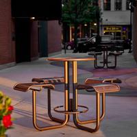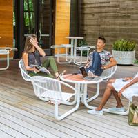 Depuis longtemps un choix privilégié pour les campus des universités, des entreprises et des établissements de santé, les tables Carousel avec sièges attachés sont des éléments de base dans les espaces extérieurs très visibles et très fréquentés. Les récents ajouts à la gamme, qui comprennent la table à hauteur bar, la table à hauteur régulière, l'assise décontractée Hoop et de nouvelles options de plateau de table, élargissent les possibilités de Carousel en répondant de manière réfléchie à un plus grand nombre d'objectifs et d'interactions avec un vocabulaire de conception commun.