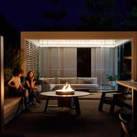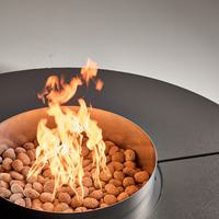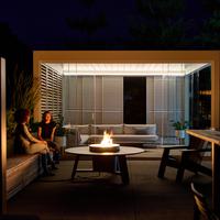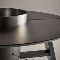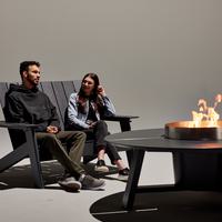 La table Harvest de hauteur régulière est dotée d’un insert pour un foyer, elle crée une expérience en plein air unique, qui reflète l'esprit décontracté, insouciant et « flâneur » signature de la gamme Harvest. Elle intègre un brûleur provenant d'un grand fabricant de composants de foyers, Warming Trends, ainsi qu'un cache et un déflecteur de vent.
