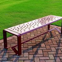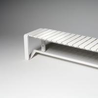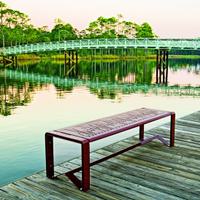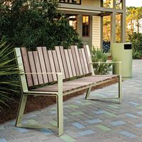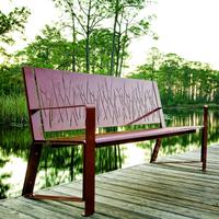 Les bancs Lakeside s’inspirent des thèmes familiers de la nature et du design historique qui caractérisent le travail de l’architecte Margaret McCurry. Les bancs à siège en acier arborent des motifs élégants de pelouses ou de feuilles, alors que la version à lattes comprend des piquets de clôture rappelant le paysage domestique américain amusant. Tous les bancs Lakeside partagent un cadre en acier plié rappelent les balançoire de véranda traditionnelle.