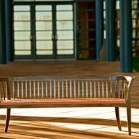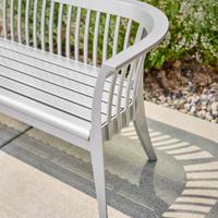 Melville est un banc gracieux conçu dans un style traditionnel-moderne. Son élégant dossier arrondi est bas, ce qui permet aux personnes assises de s’appuyer dans sa forme courbe et de déposer leurs bras confortablement sur le bord supérieur. Dans la version sans dossier, les extrémités de la structure s'évasent légèrement vers l'extérieur pour imiter un geste de bienvenue.