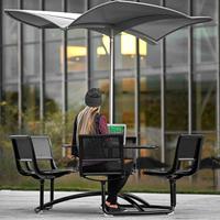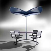 Mingle est un système de sièges ouverts et accueillants qui réunit tout le monde autour de la table. Sa structure asymétrique distinctive crée une ambiance dynamique et offre un accès facile. Le parasol assorti Shade est doté d’un auvent gracieux en aluminium en formes d’ailes qui crée l’esprit des lieux. Positionnés côte à côte, les auvents carrés créent des « vagues ».