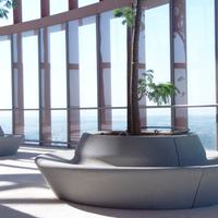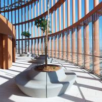 Conçue par Balmori Associates pour Escofet, la jardinière Mirador a une forme simple et ovale, formée par quatre pièces de béton moulé. Son périmètre arrondi forme un banc intégré pouvant accueillir jusqu'à 12 personnes. Les pots-banc reposent sur le pavage sans nécessiter d'ancrages.